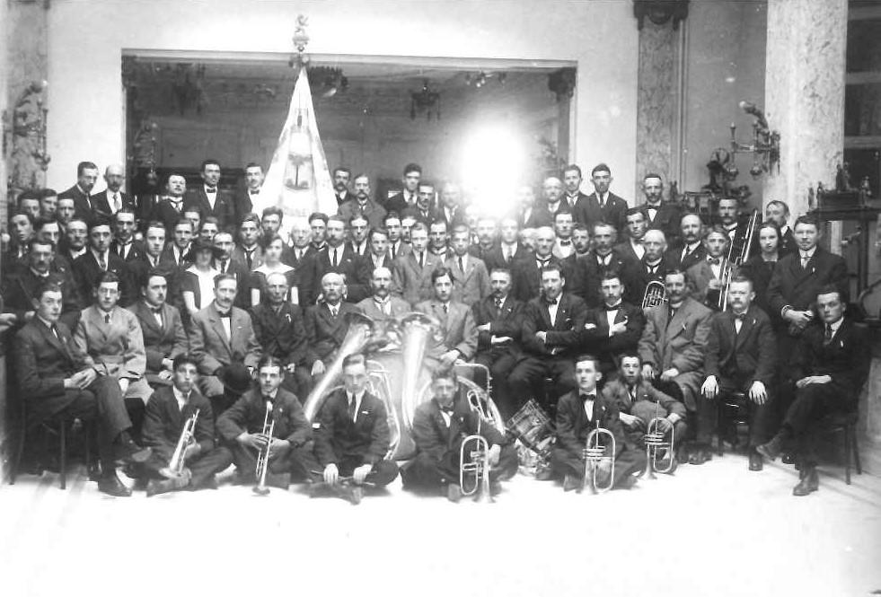 Fanfare Hoop in de Toekomst werd opgericht op 22 november 1901 in Lommel-Centrum. De vlag is dus mogelijk ruim honderd jaar oud. Daar twijfel je eigenlijk niet aan wanneer je ze ziet. Ondanks alle goede zorgen heeft de blootstelling aan weer en wind in de beginjaren, en het verstrijken van de tijd, onvermijdelijk zijn sporen nagelaten.